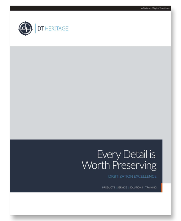 DT Heritage is the leading provider of digitization solutions for the world’s leading institutions, corporations, research facilities, libraries, museums, and archives. Through cutting-edge technology and our own in-house proficiency, we provide turnkey digitization solutions that combine advanced digitization systems, sophisticated automation software, and industry-leading training and expertise. Those same elements are also the foundation of our state-of-the-art service division, staffed by industry experts experienced in preserving the most valuable and challenging collections.